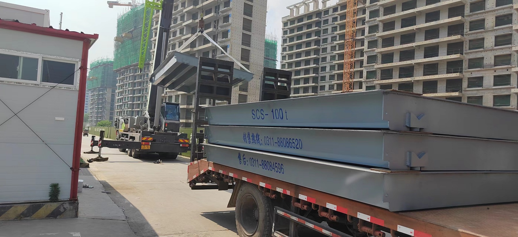 石家莊囯赫控股,古城西路囯赫天璽工地項目,3x16米100噸地磅安裝完畢,硬化路面安裝,后做坡道,簡單快捷.